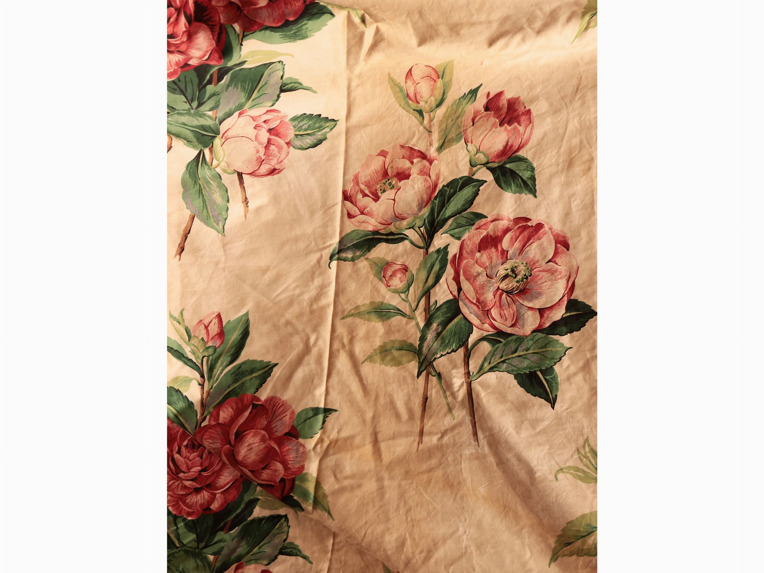 tra cui una raccolta di passamanerie e merletto, una tenda in seta decorata con fiori nei toni del rosa su fondo avorio ed una serie di tre fregi in legno intagliato e dorato, centrato da motivo di conchiglia (da restaurare)
