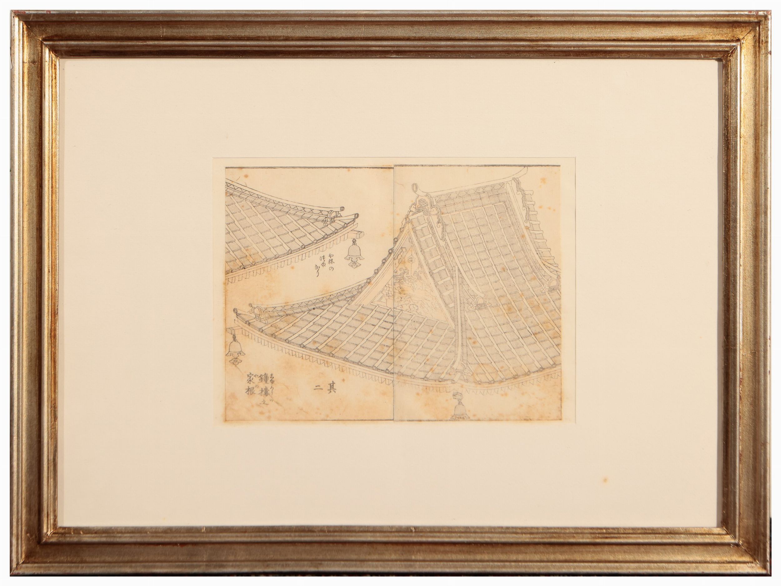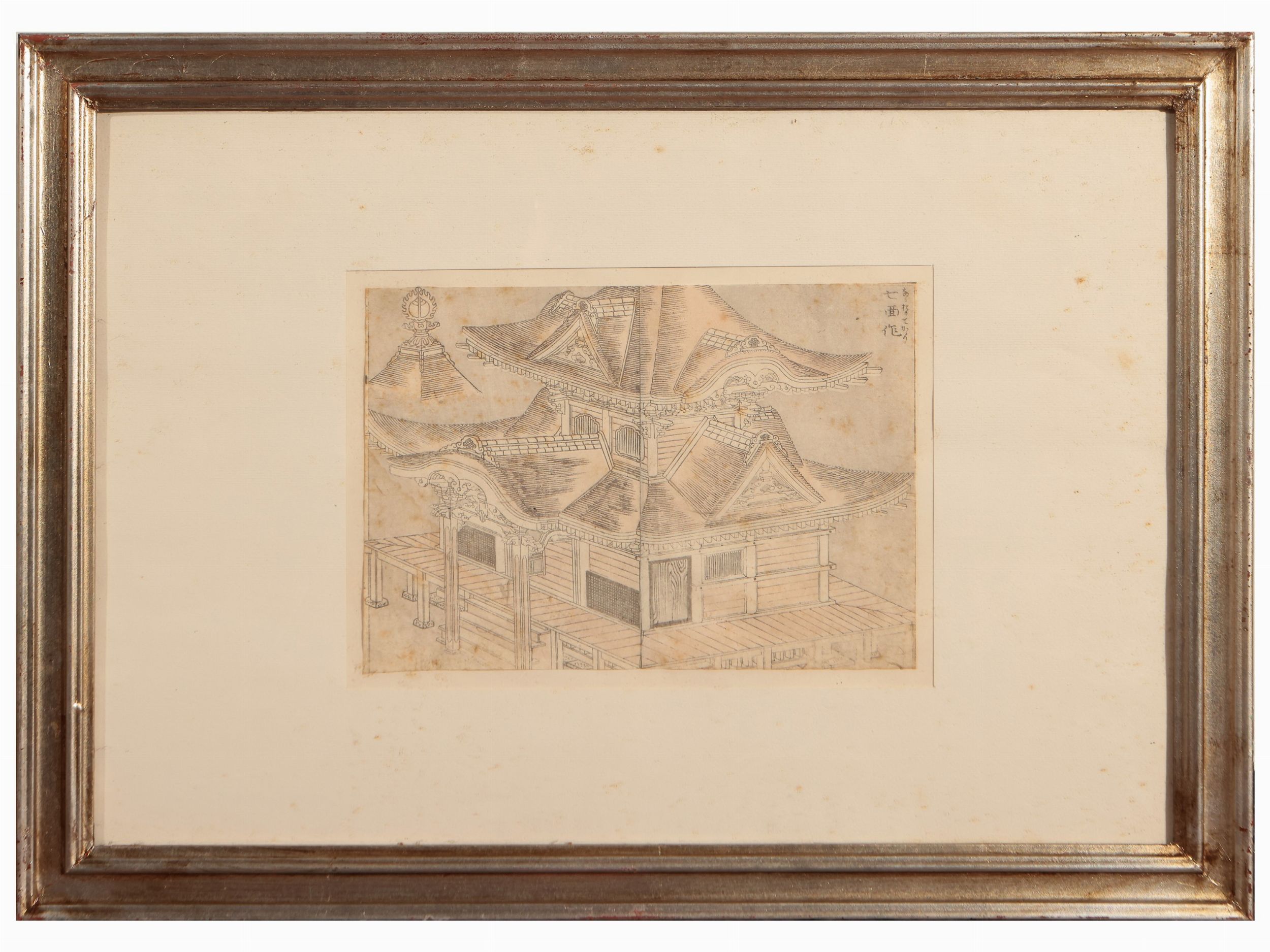 XX secolo due con Vedute di Templi, Fiori e Guerriero, tracce di foxing, in cornice