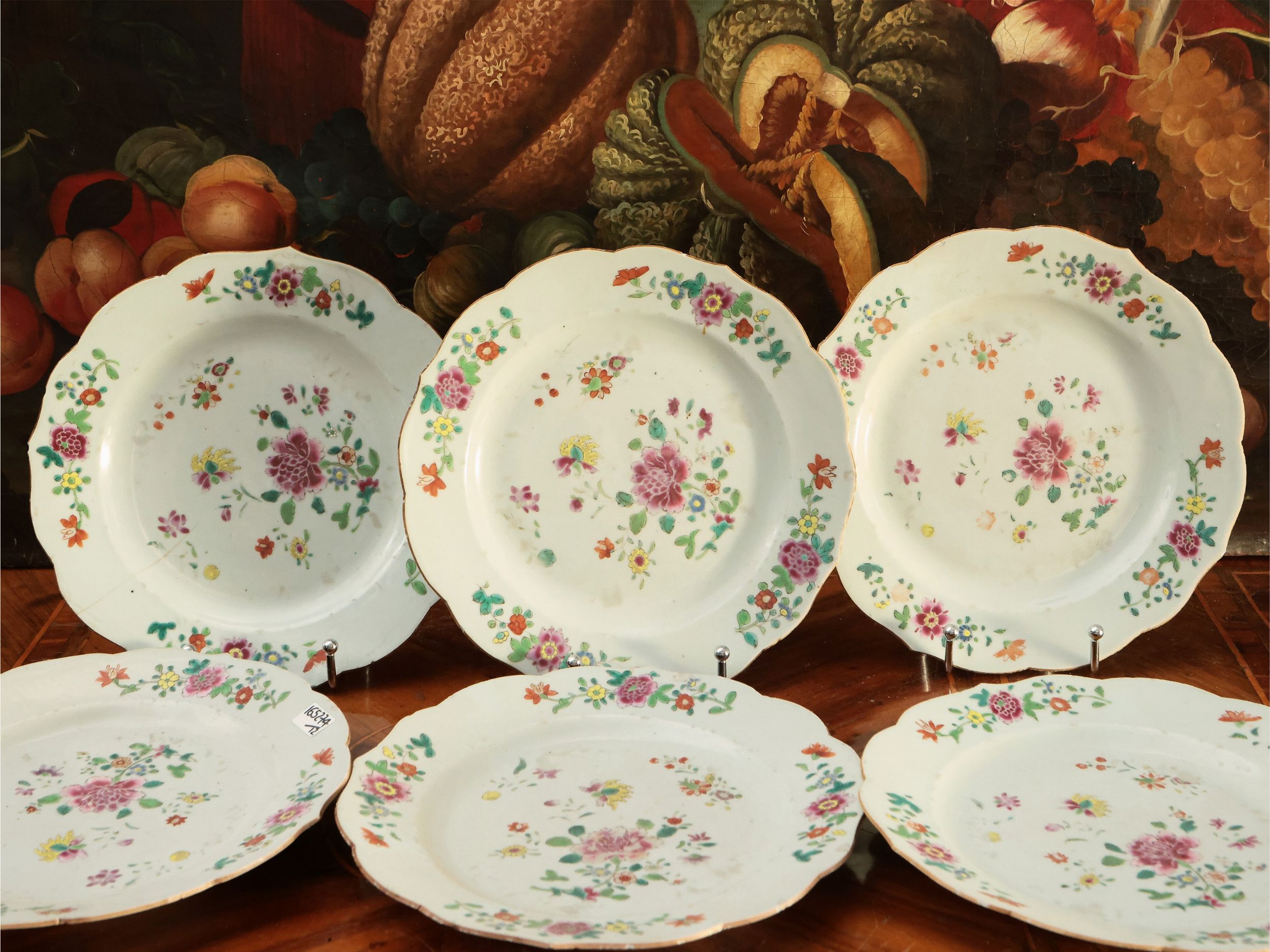 Cina, XVIII/XIX secolo dipinti con motivi floreali policromi e bordo mosso