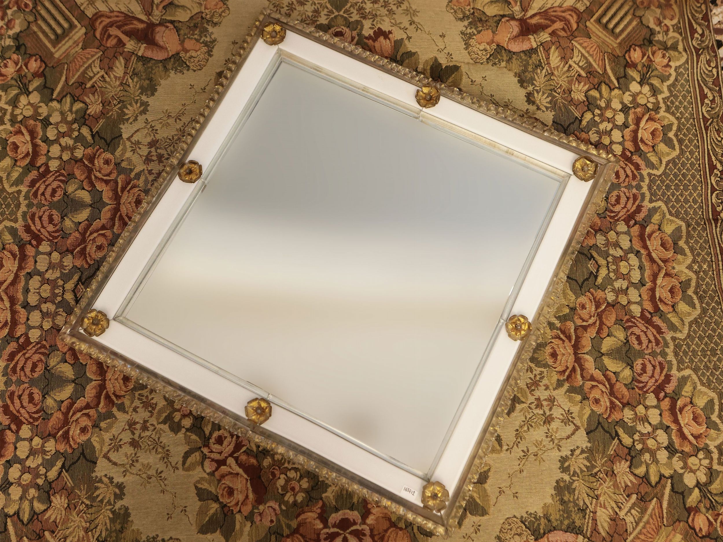 XX secolo realizzata in vetro bianco, bordo mosso in vetro trasparente con inclusioni dorate e applicazioni a foggia di fiore