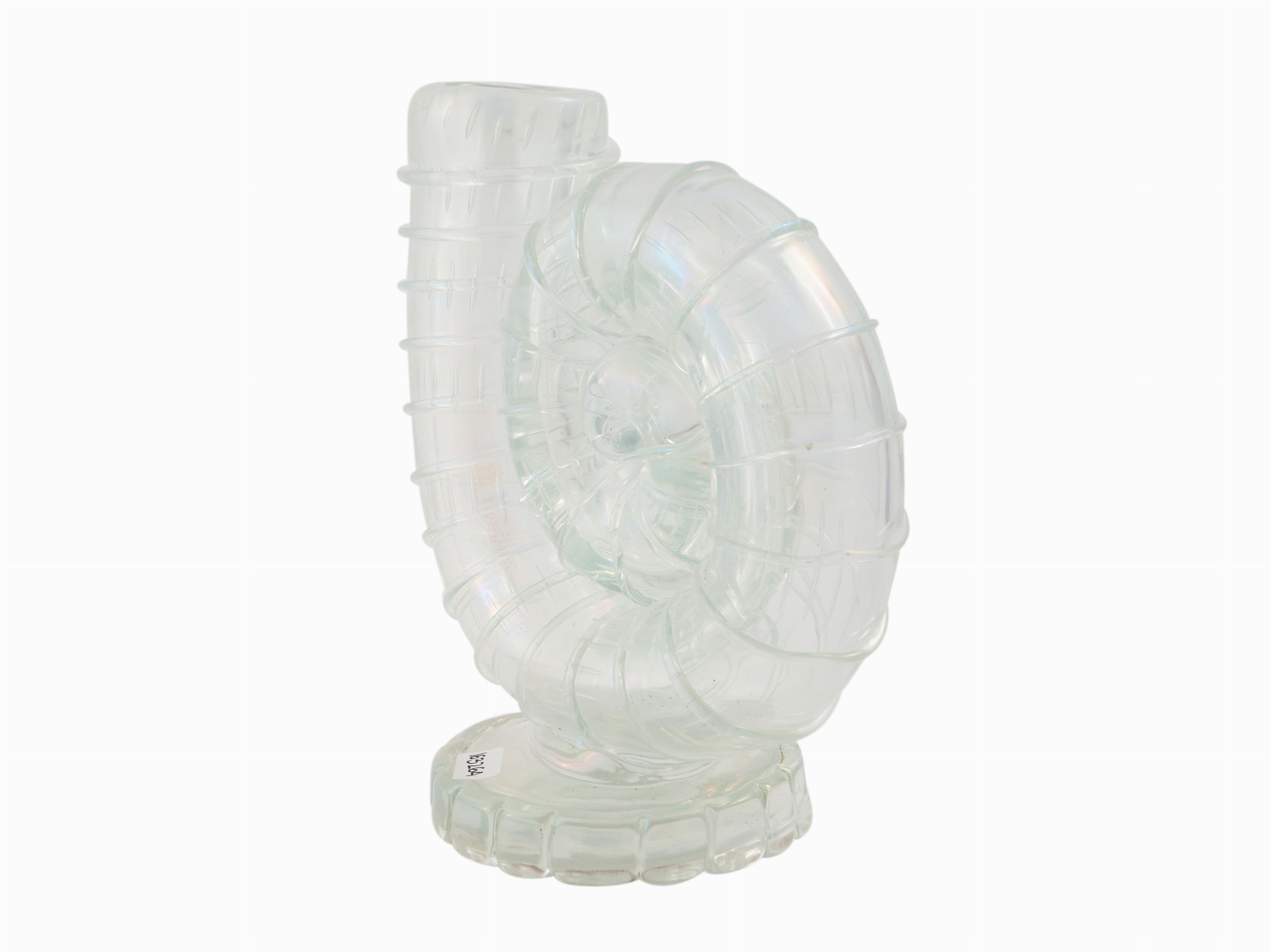 Murano, Italia 1940 circa a forma di conchiglia in vetro iridato con fasce a spirale e piede applicato a caldo.