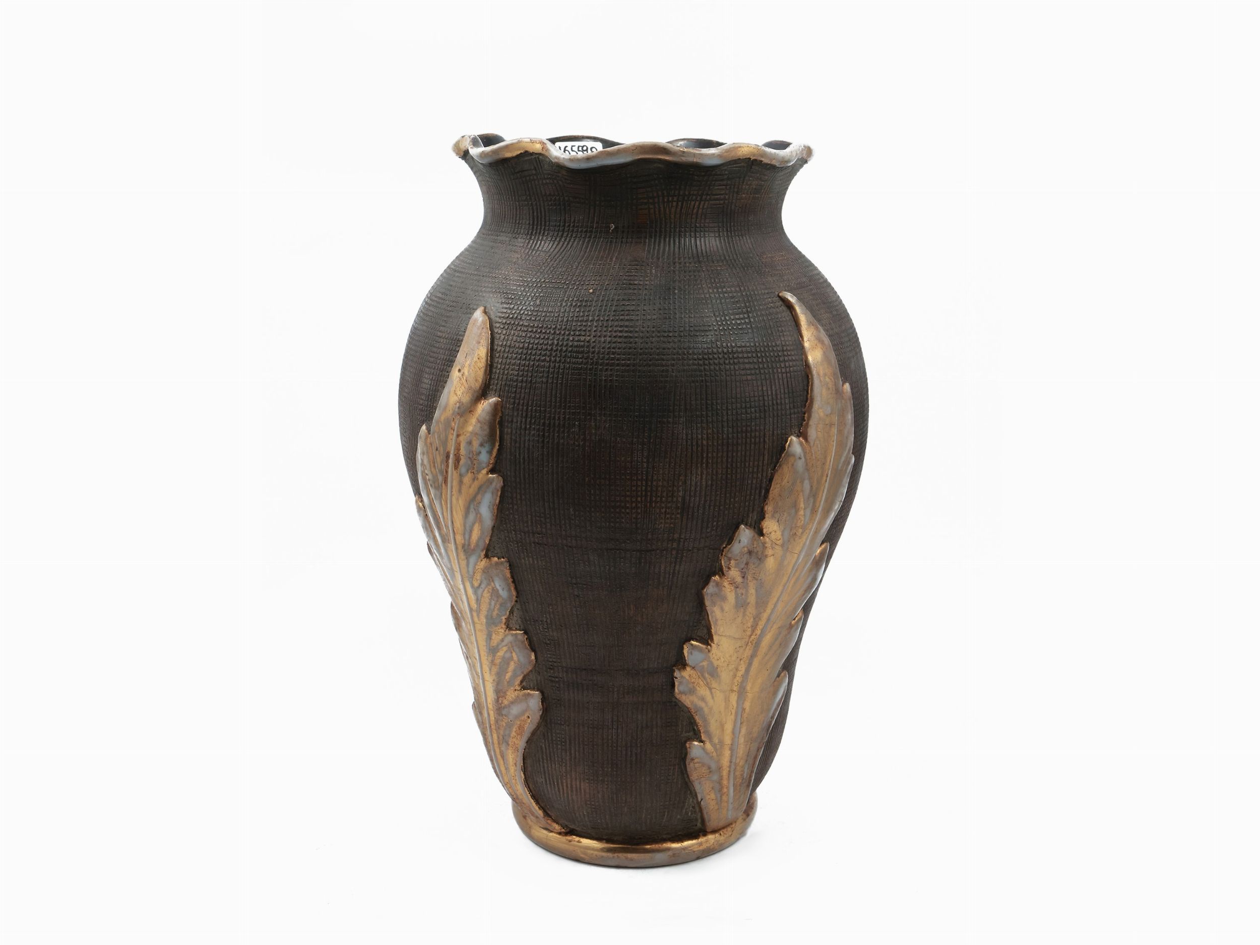 Anni Quaranta decorato con foglie d'acanto in rilievo lumeggiate in oro su fondo marrone, lievi difetti