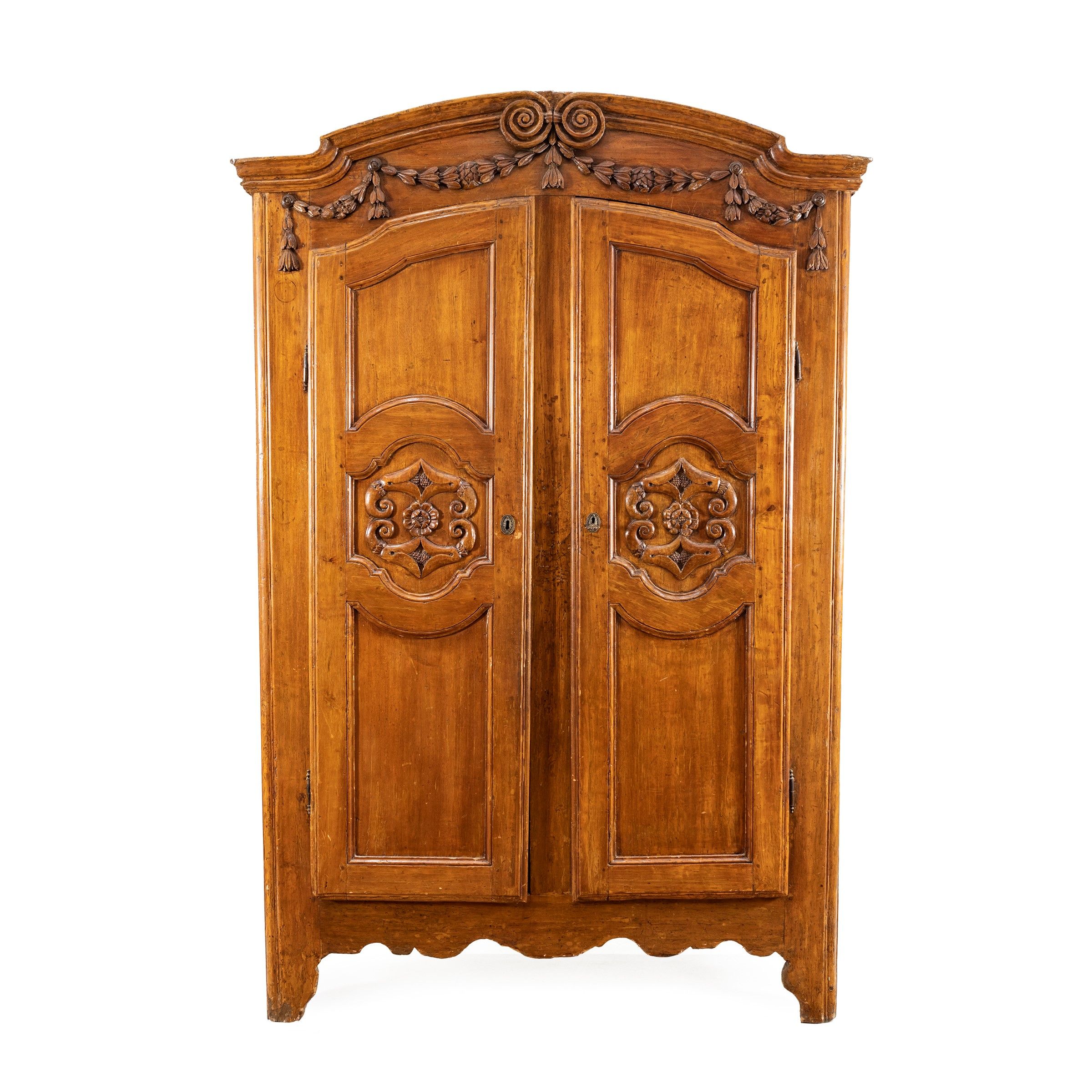 Piemonte, fine XVIII Sec. fronte a due ante con decorazioni ad intaglio, cappello e base modanati