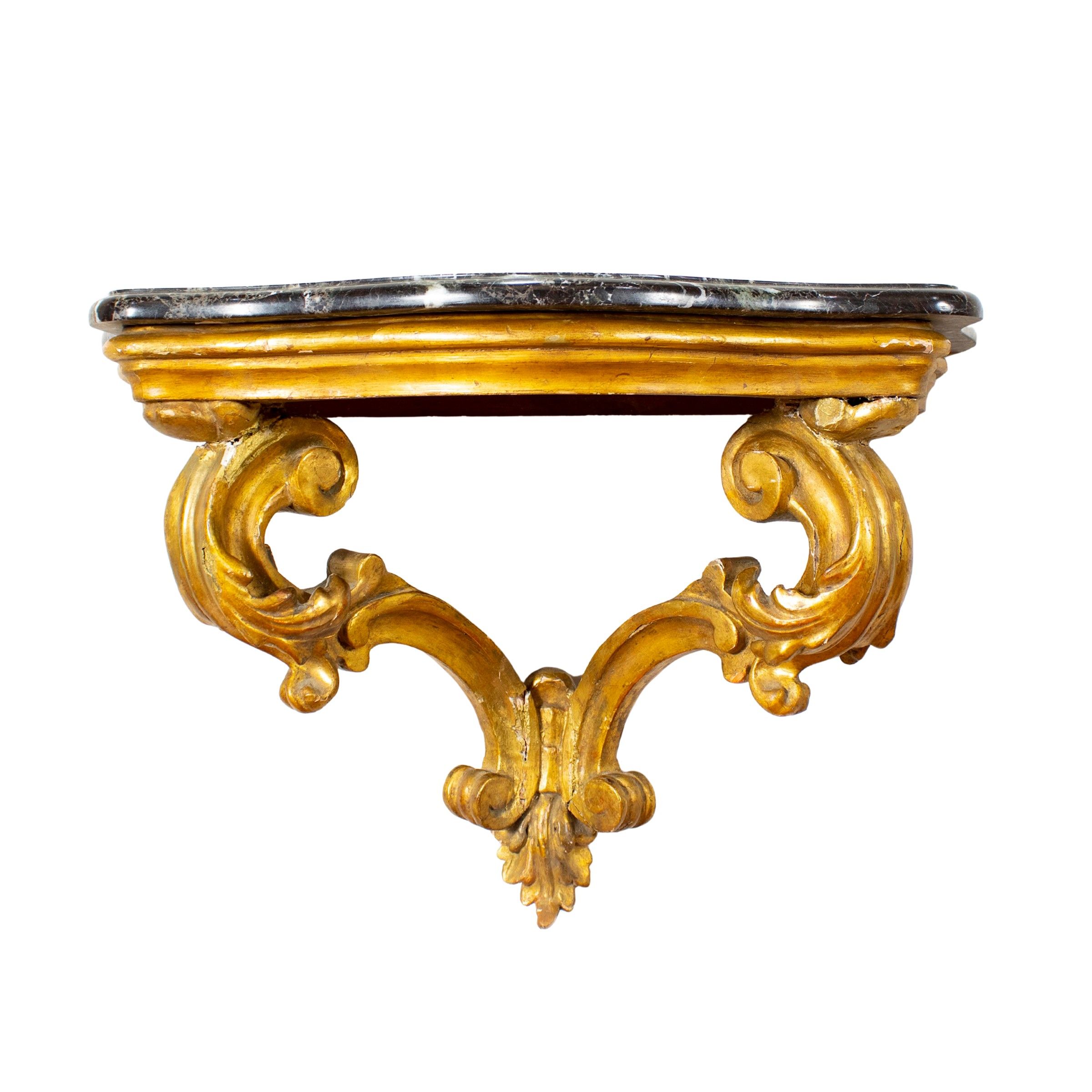 Console a mensola in legno dorato ed intagliato