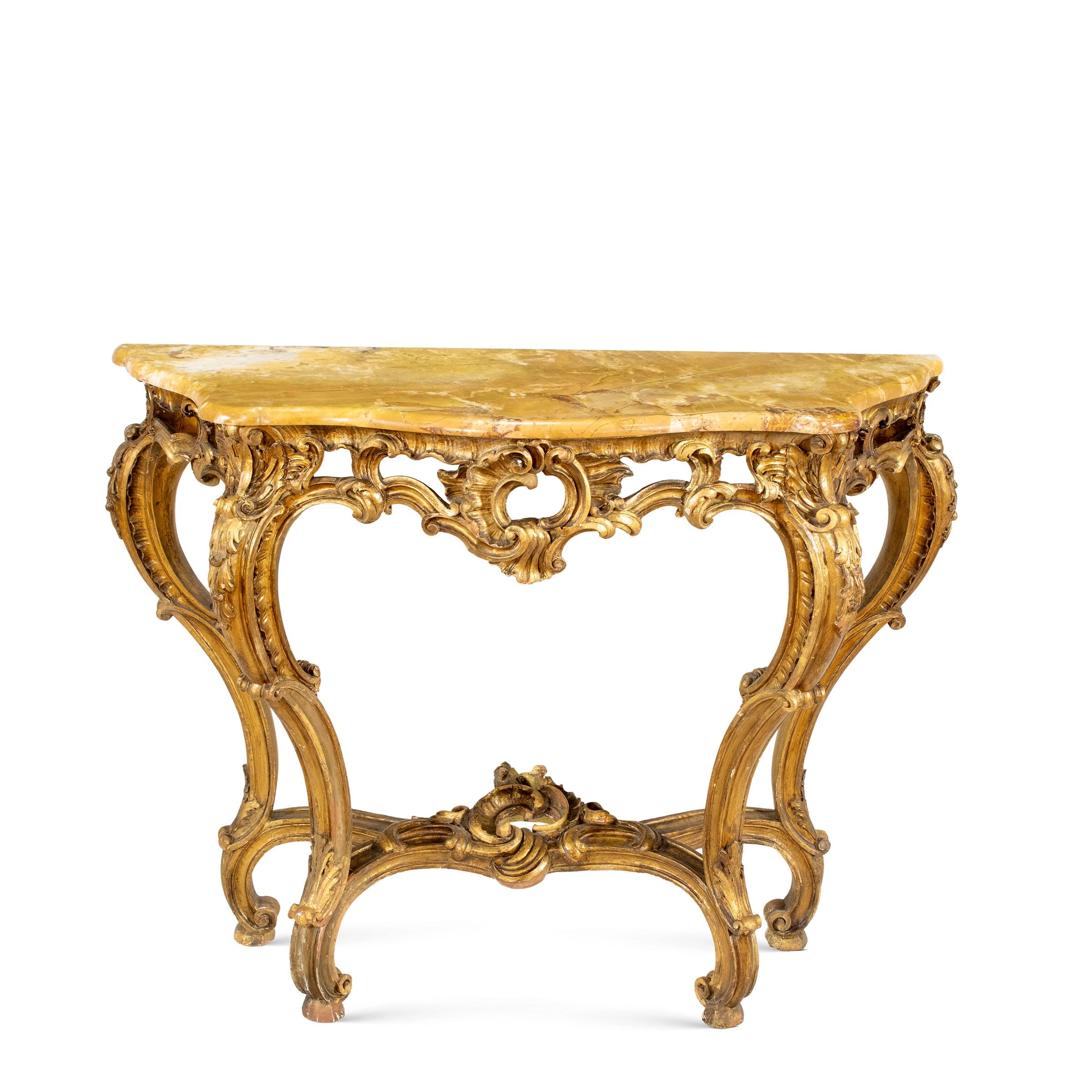 Francia, XIX Sec. piano sagomato in marmo, fascia traforata e decorata con motivi vegetali, sostegni di linea mossa, lievi difetti