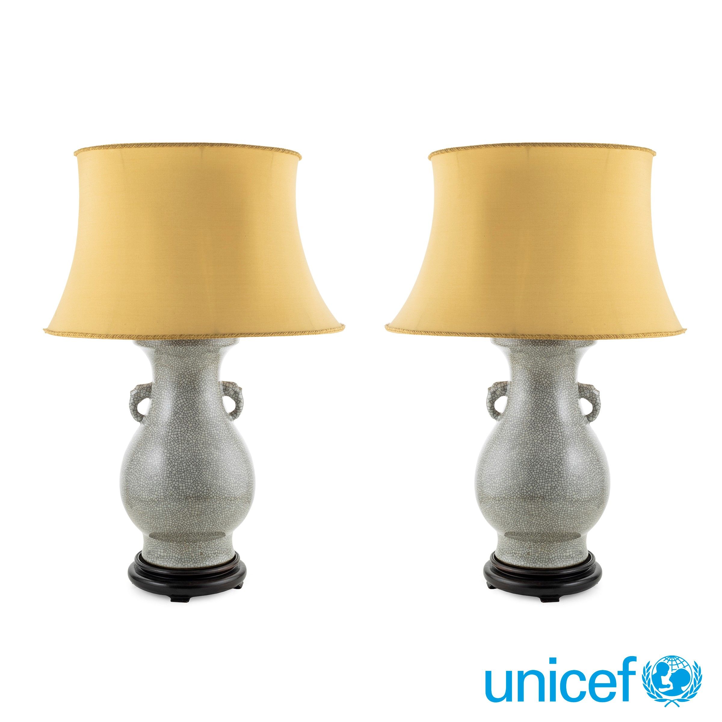 XX Sec. decorate nella tonalità del grigio, complete di basi in legno e paralumi, difetti