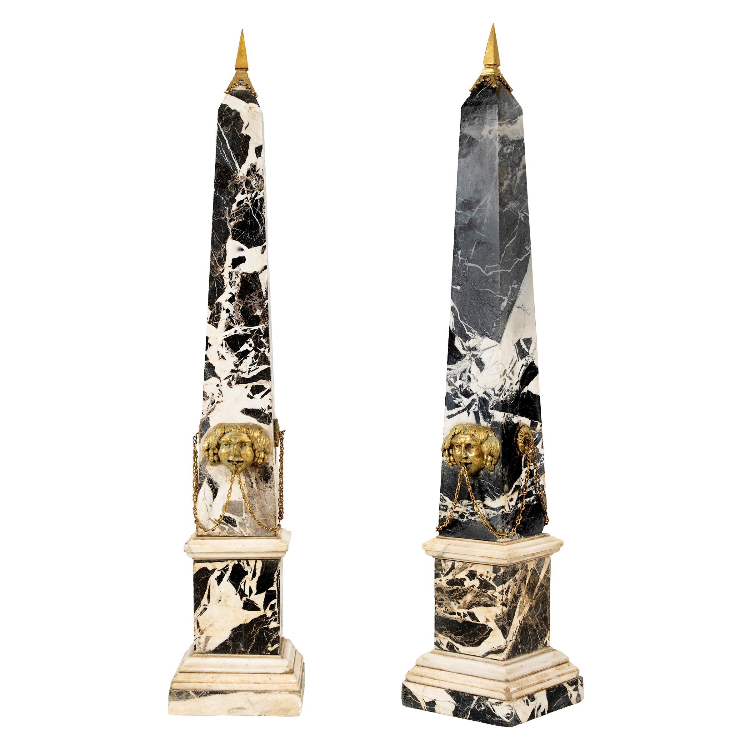 Italia, XX Sec. lastronati in bianco e nero d'Aquitania su base a plinto, applicazioni in bronzo dorato, lievi usure