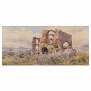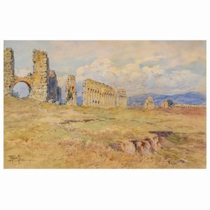 38x60 cm. Roma 1876 - 1955 'Scorcio dell' Acquedotto romano', acquerello su carta, firmato in basso a sinistra, [..]