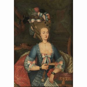 150x106 cm. XVIII Sec. 'Ritratto di gentildonna lucchese', olio su tela, entro cornice