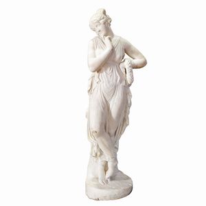 122x36x26 cm. Italia, XIX-XX Sec. a sezione squadrata e rastremata su piede a plinto, lastronate in alabastro [..]