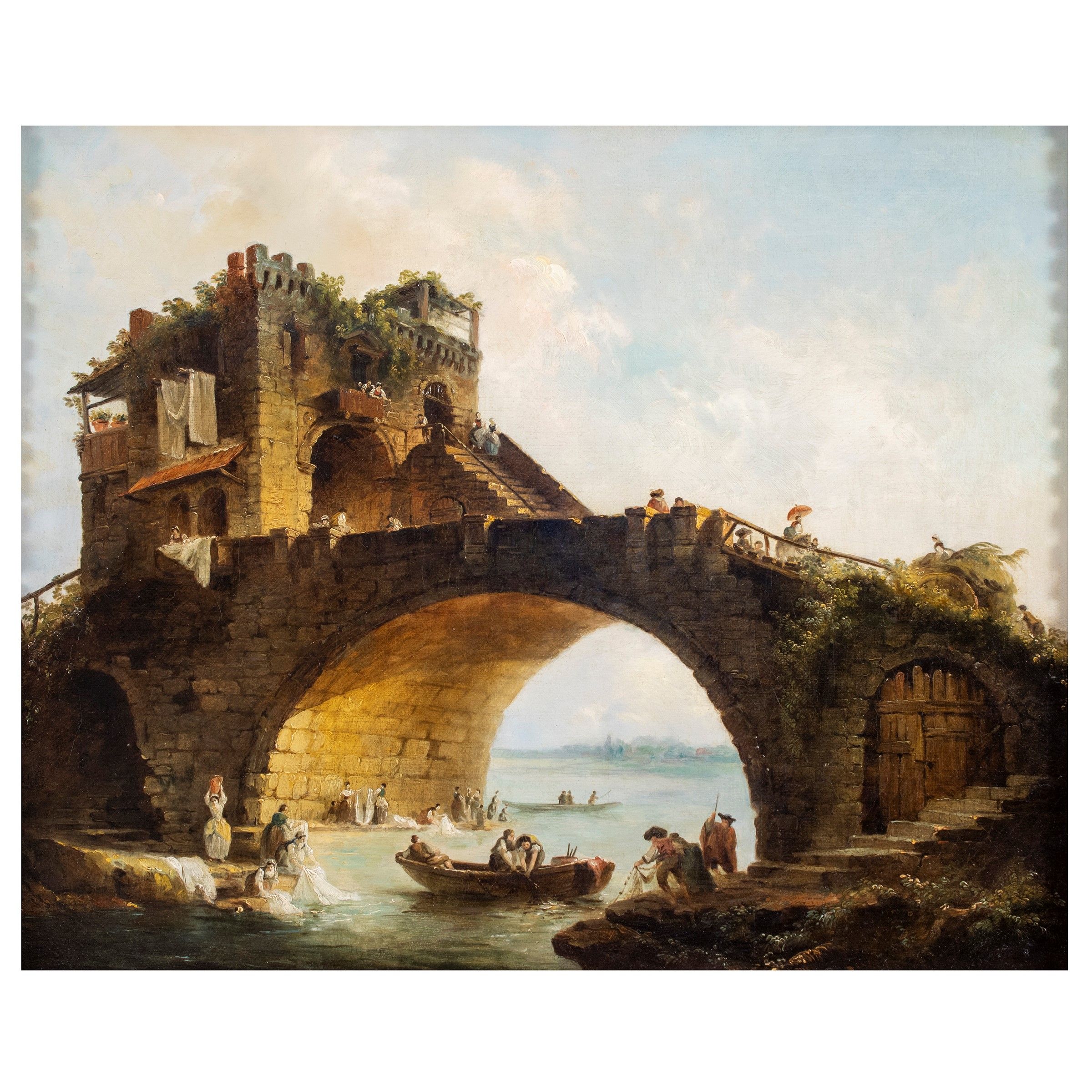 XVIII - XIX Sec. 'Ponte Salario - Roma', olio su tela, entro cornice