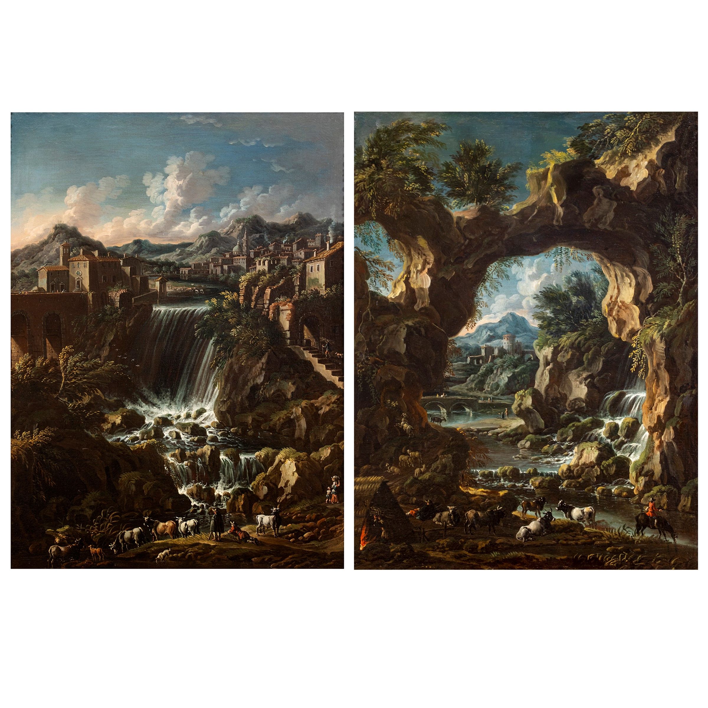 Heidelberg 1663 - Brunschweig 1731 'Vedute di Tivoli', coppia di oli su tela, uno siglato in basso a sinistra, entro cornici