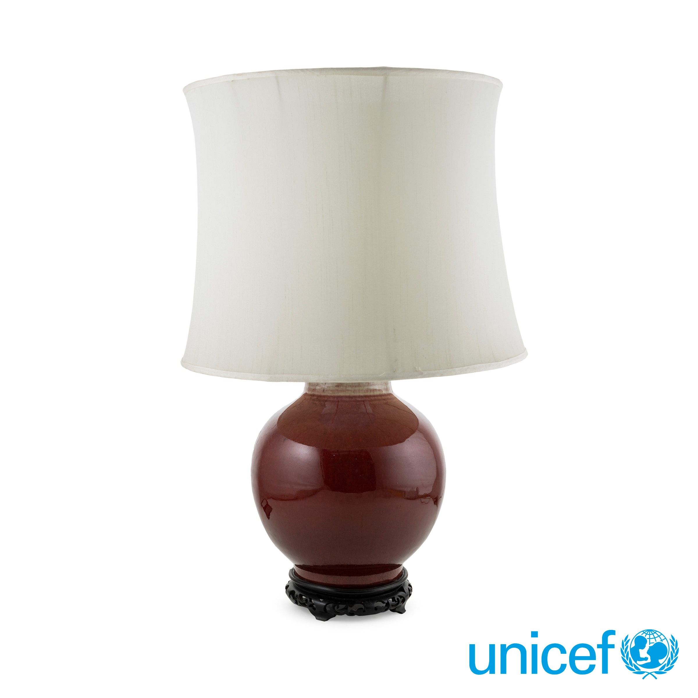XX Sec. decorata nella tonalità del rosso bordeaux, completa di base in legno e paralume