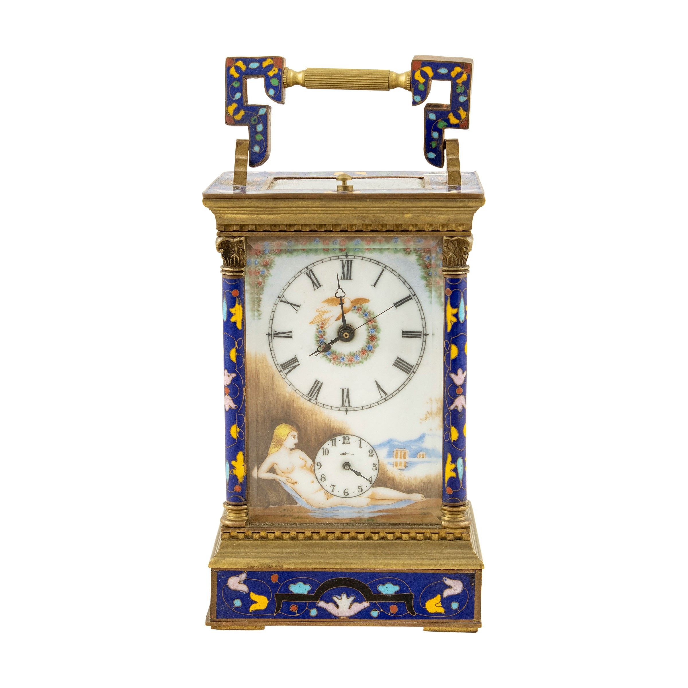 inizio XX Sec. struttura architettonica, quadrante in smalto policromo, vetro molato, maniglia a doppia voluta