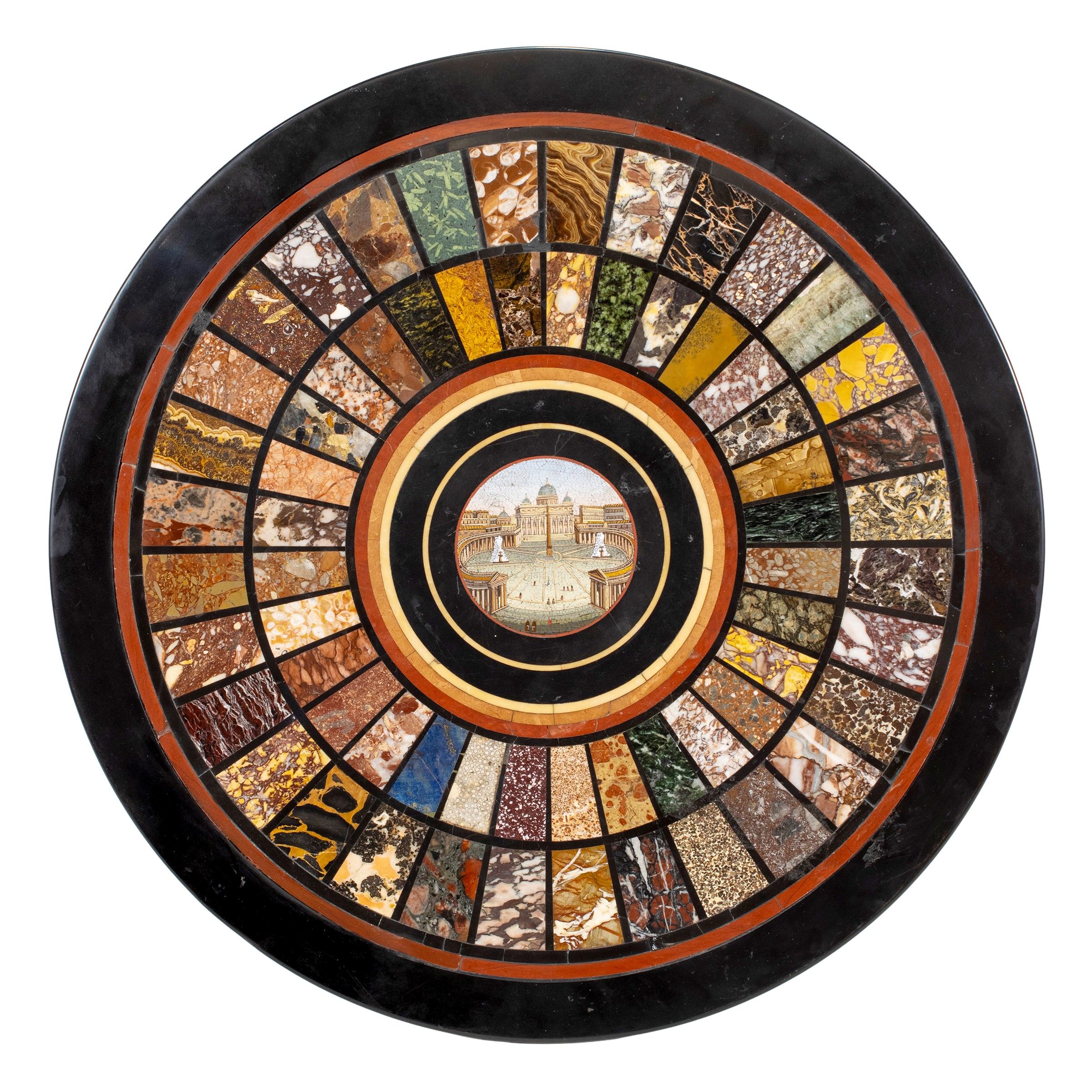 Roma, XIX Sec. centrato da una placca in micromosaico raffigurante Piazza San Pietro, poggiante su base a tripode in bronzo dorato e cesellato con motivi vegetali, difetti