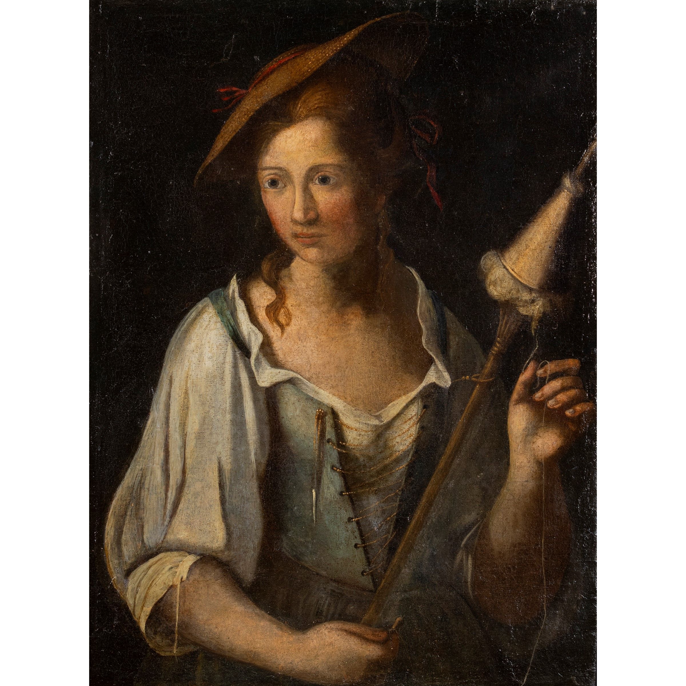 XVIII Sec. 'Ritratto di filatrice', olio su tela, entro cornice coeva