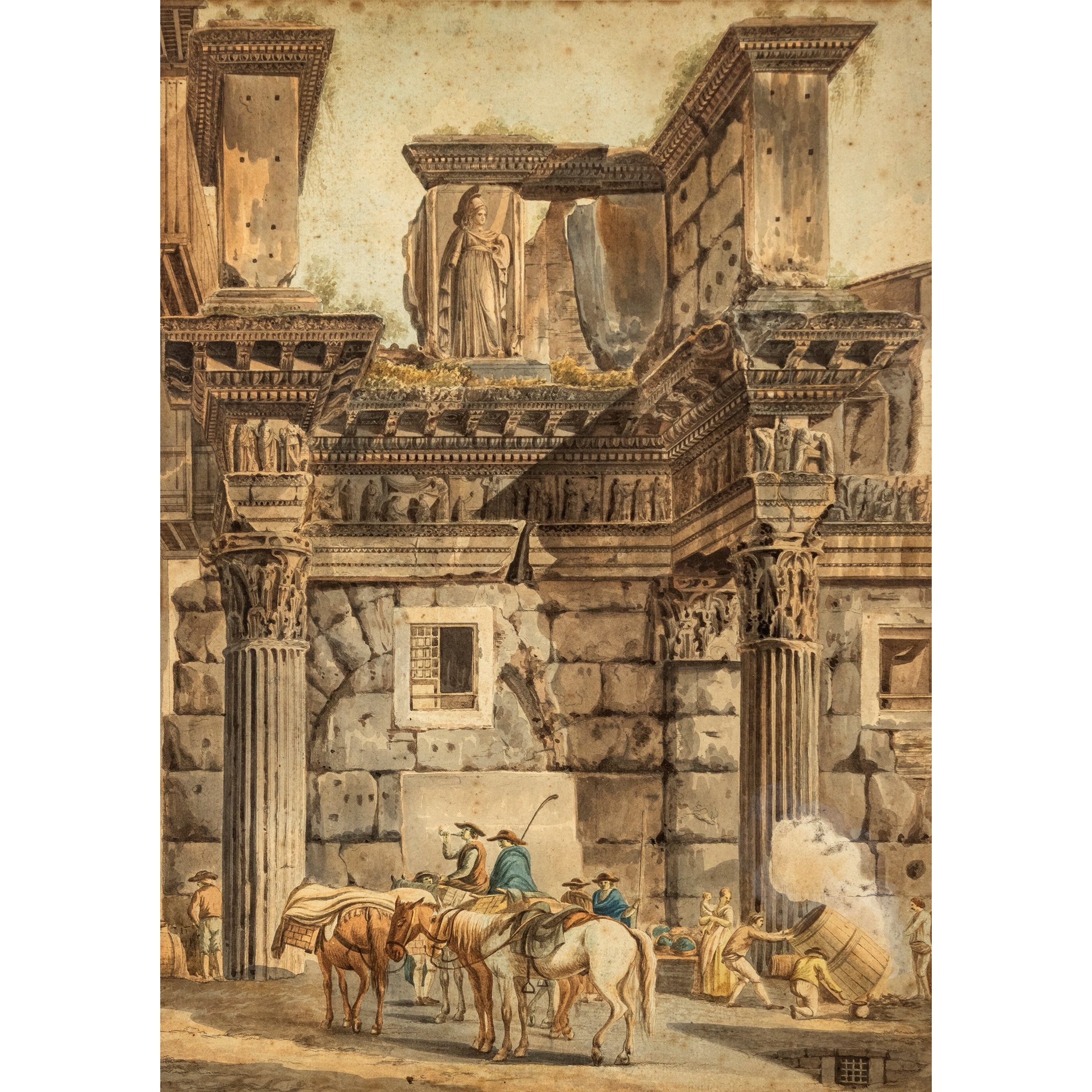 Monte Porzio 1757 - Roma 1830 'Il Foro di Nerva', acquerello su carta, entro cornice