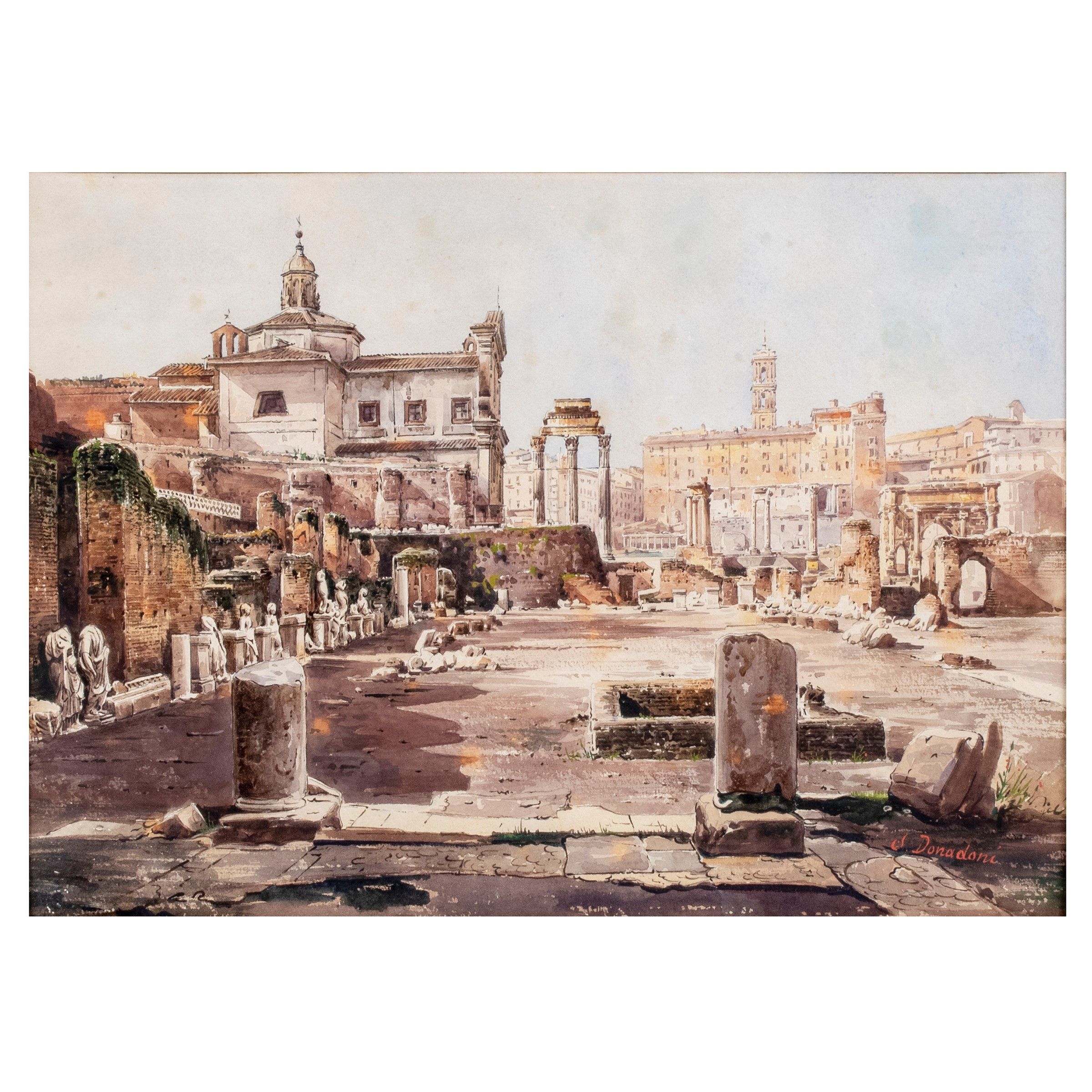 Bergamo 1844 - 1911 'Veduta del Campidoglio dal Foro', acquerello su carta, firmato in basso a destra, entro cornice