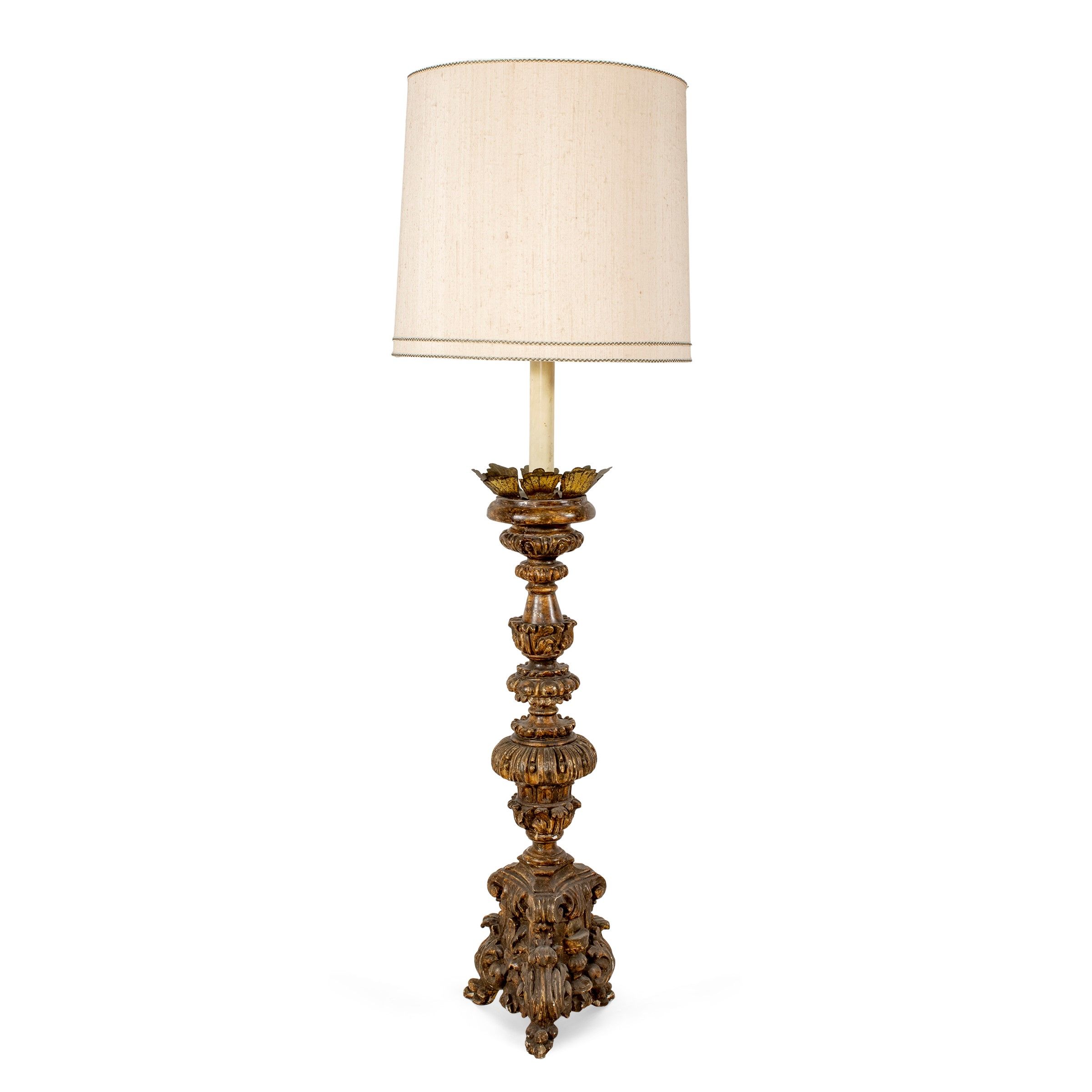 Italia, XVIII-XIX Sec. intagliato con motivi di volute vegetali, completo di paralume, lievi difetti
