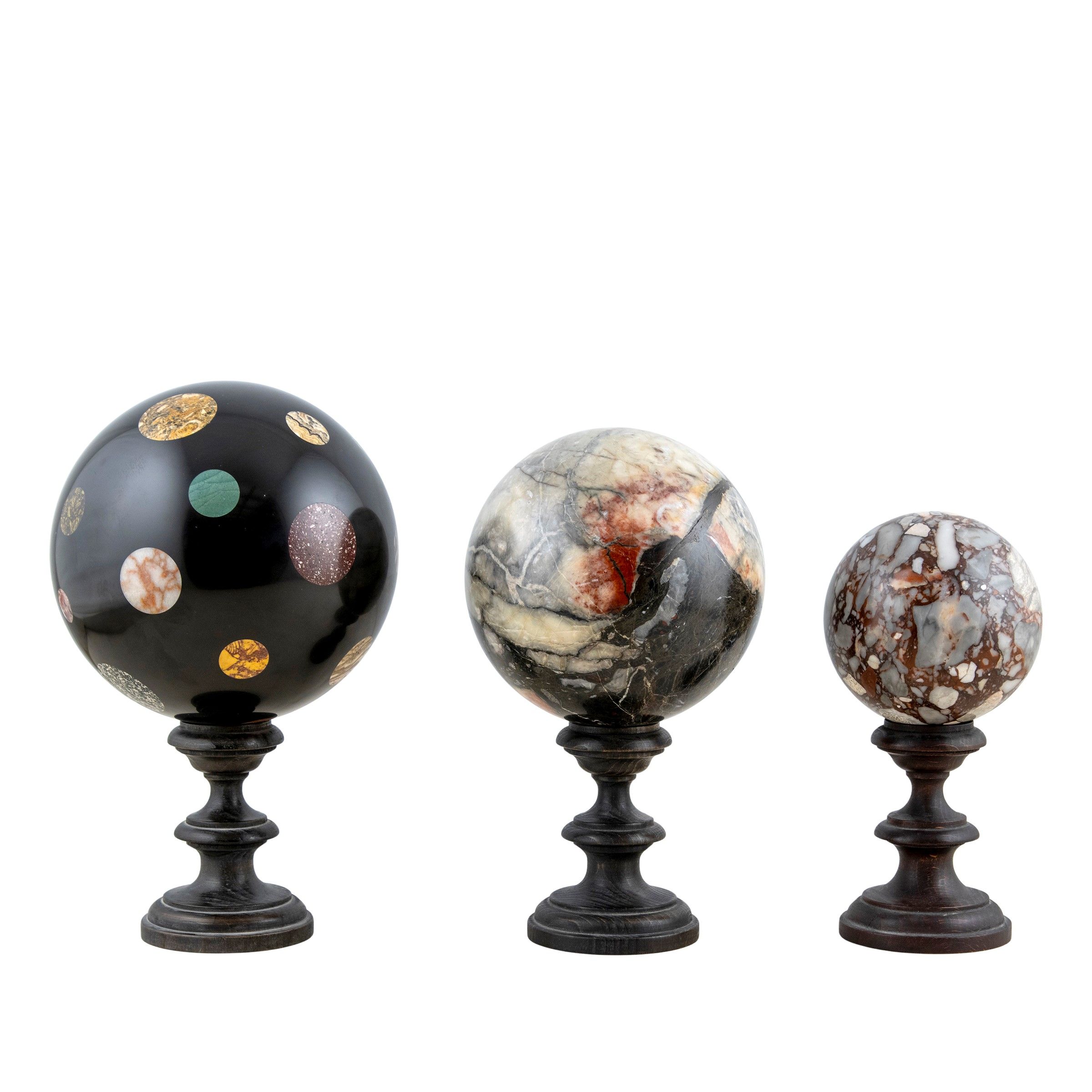 Tre sfere in marmi policromi