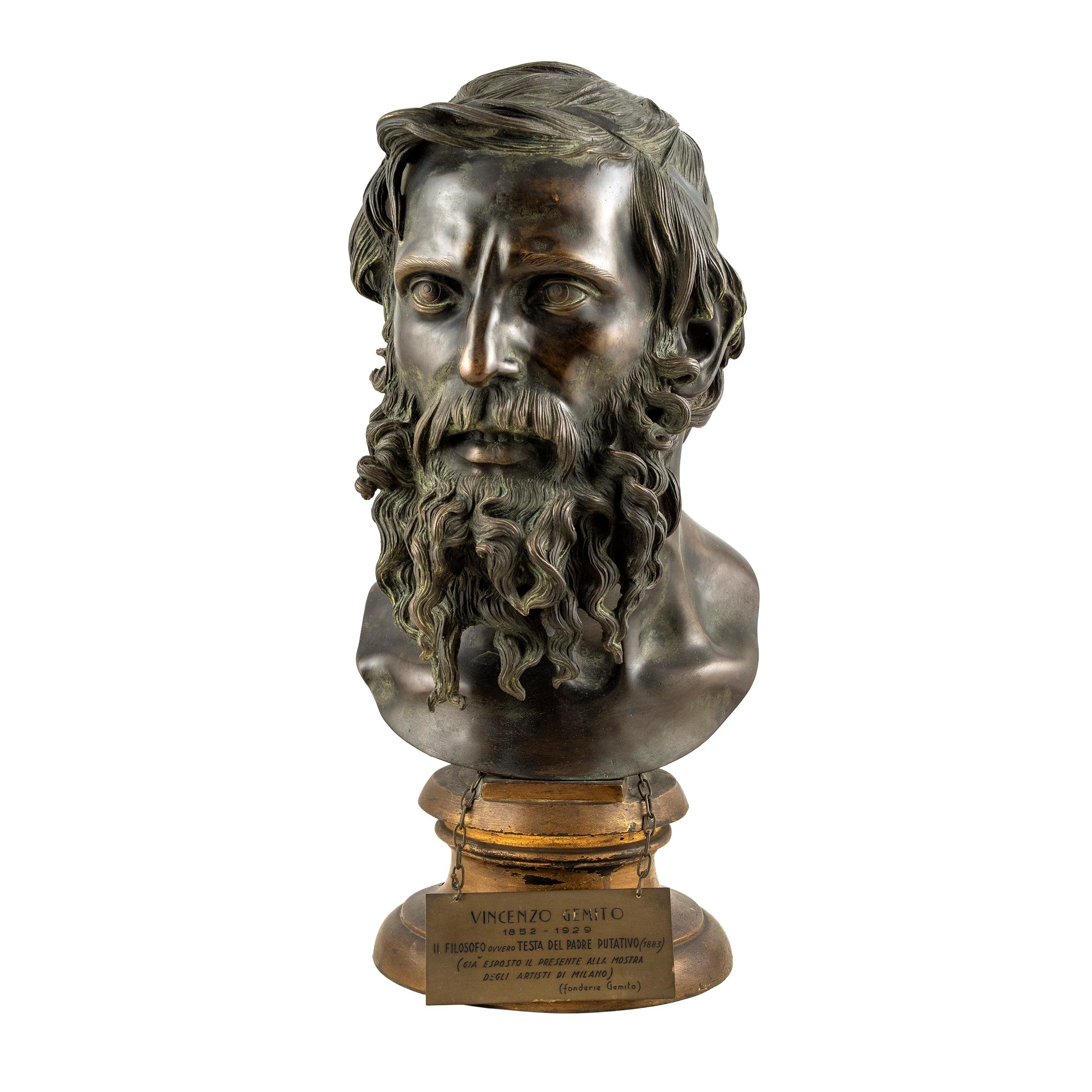 Napoli 1852 - 1929 'Il filosofo', 1883, scultura in bronzo patinato, firmata sul retro, marchio capovolto della fonderia Gemito, sul retro Esposizioni: Mostra degli artisti di Milano; De Nicola, Gemito, Galleria d'Arte Mandriota, Roma, marzo 1943 Bibliografia: De Nicola, Gemito, Galleria d'Arte Mandriota, Roma