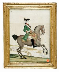 1780 ca. Bulino in coloritura e oro. mm 260x 200. Incisione raffigurante l'imperatore Giuseppe II d'Asburgo a [..]