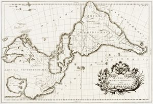 1743. Incisione in rame. mm 295x368. Foglio: mm 330x420. Importante mappa del Nord America che mostra la via [..]