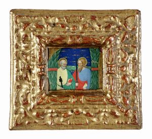 XIV secolo Tempera a colori e oro su pergamena. mm 75x80. Provenienza: Collezione Tammaro De Marinis.