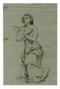 Matita nera su carta vergellata azzurra. mm 346x230. Al verso marchio di collezione a inchiostro nero non identificato. [..]