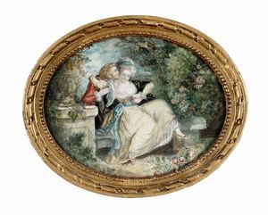 1750 ca. Acquerello a colori in ovale su carta. mm 140x180. Provenienza: Collezione Tammaro De Marinis. [..]