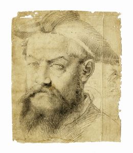 Matita nera su carta color sabbia con filigrana "frecce incrociate sormontate da stella" (simile a [..]