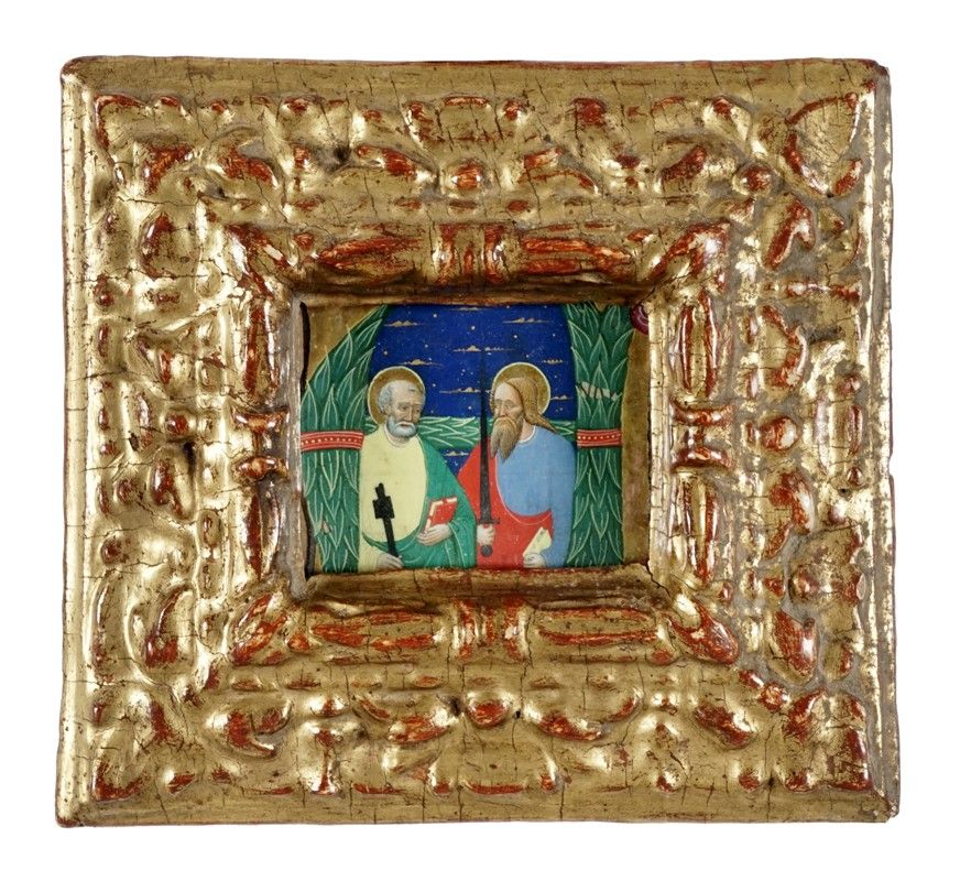 Tempera a colori e oro su pergamena. mm 75x80. Provenienza: Collezione Tammaro De Marinis.