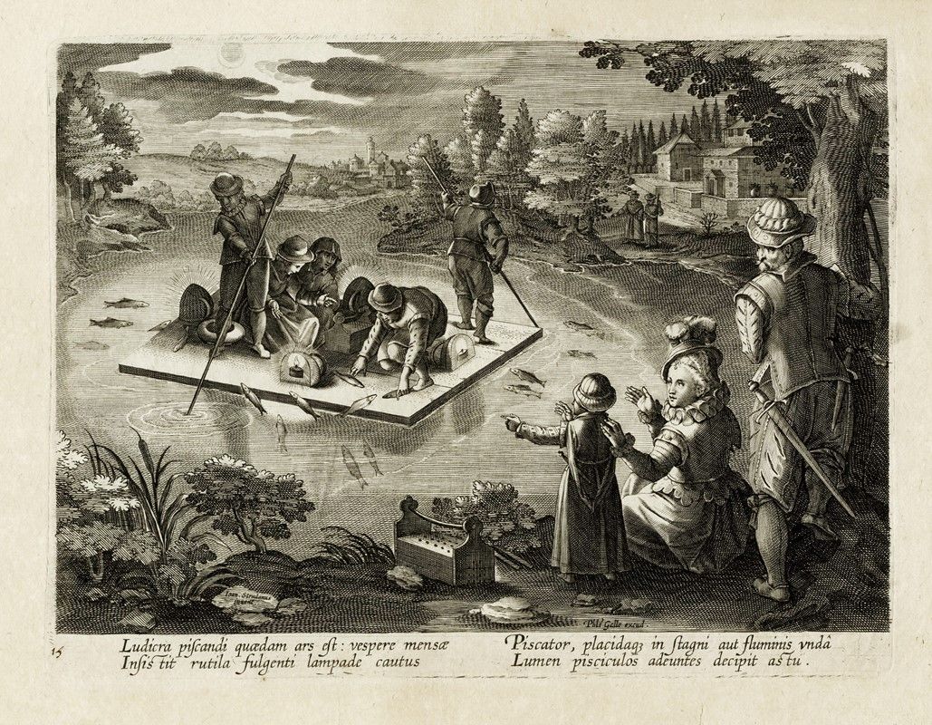 Bulino. mm 195x262. Foglio: mm 244x330. New Hollstein, 526. Attribuita a Jan Collaert II (Antwerp, 1561-1620 ca.). Al margine inferiore a sinistra il numero "15" a penna e inchiostro bruno. Dalla serie Venationes ferarum avium piscium su invenzione di Jan van der Straet (Bruges 1523 - Firenze 1605) edita in origine nel 1578 con 43 tavole non numerate incise da Philips Galle e dedicate a Cosimo de Medici. La serie venne ampliata con ulteriori fogli incisi da Adriaen Collaert, Jan Collaert, Charles Galle I e Carel de Mallery e fu pubblicata ad Anversa nel 1596. Bellissima impressione stampata con inchiostrazione brillante su carta vergellata sottile con contromarca "numero 4 su piccolo cuore".