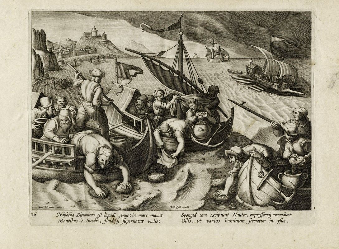 Bulino. mm 204x265. Foglio: mm 248x335. New Hollstein, 501. Attribuita a Adriaen Collaert (Antwerp, 1560-1618). Al margine inferiore a sinistra il numero "36" a penna e inchiostro bruno. Dalla serie Venationes ferarum avium piscium su invenzione di Jan van der Straet (Bruges 1523 - Firenze 1605) edita in origine nel 1578 con 43 tavole non numerate incise da Philips Galle e dedicate a Cosimo de Medici. La serie venne ampliata con ulteriori fogli incisi da Adriaen Collaert, Jan Collaert, Charles Galle I e Carel de Mallery e fu pubblicata ad Anversa nel 1596. Bellissima impressione stampata con segno pieno e brillante su carta vergellata sottile con filigrana "P gotico".