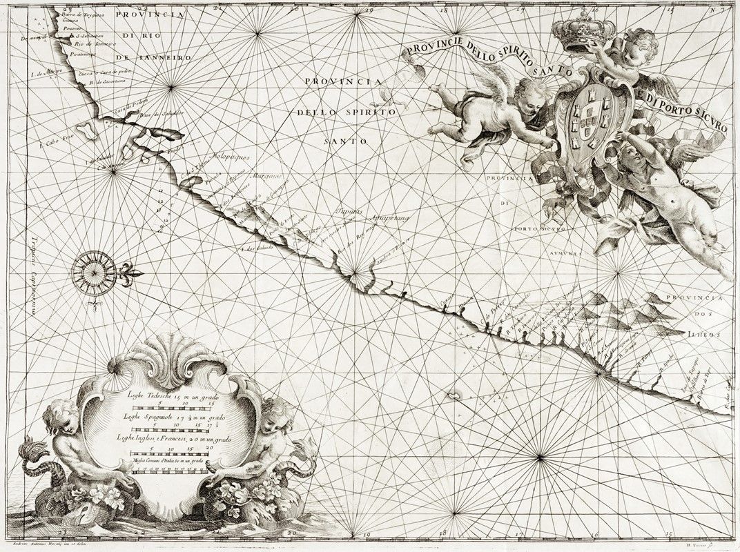 Incisione in rame. mm 382x515. Foglio: mm 421x550. Al margine inferiore da sinistra a destra le indicazioni di responsabilità a partire dal nome del disegnatore Andrea Antonio Orazi fino a quello dell'incisore Hubert Vincent. Sulla lastra in alto a destra "N. 7". Mappa facente parte delle ventitrè a corredo del raro resoconto di Padre de Santa Teresa sulla guerra coloniale olandese-portoghese. Carta vergellata con filigrana "agnello pasquale in doppio cerchio e lettere A N" (Italia,1680).