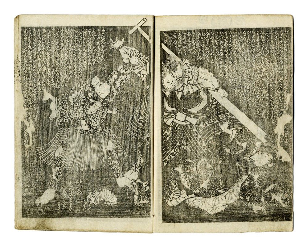 Formato: mm 175x120. Ventidue pagine illustrate con xilografie in nero. Il volumetto racconta la storia di Oden Takashi, avvelenatrice giustiziata nel gennaio 1879. SI AGGIUNGE: Ry?kateiTanekazu, Utagawa Toyokuni, Shiranui Monogatari Vol.6. Xilografia in nero. Formato: mm 175x120. Impressioni affievolite.
