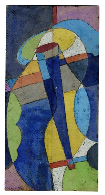 Tempera, acquerello e carboncino su doppio pannello di cartone. cm 38x19,5. Firmato e datato in basso a sinistra.
