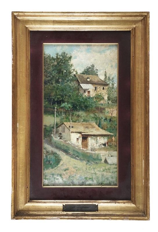 Olio su tavola. cm 40x20. Firmato in basso a destra. Targhetta metallica applicata all cornice recante il nome d'artista ed il titolo dell'opera. Al verso: timbro ad inchiostro nero di Galleria Cordusio di Milano con ulteriore etichetta della stessa.