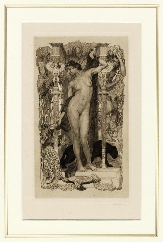 Acquaforte, bulino e ago. mm 239x144. Foglio: mm 480x320. LIPINSKY 1940, n. 21; GROCHALA, 1995, n. 21. Firmata a matita in basso a destra. Tiratura in prova d'artista, avanti il numero. Tav. V dell'Odissea, serie di 8 incisioni eseguite fra il 1923 ed il 1928 ed edite a Monaco di Baviera da Franz Hanfstängl nel 1929.