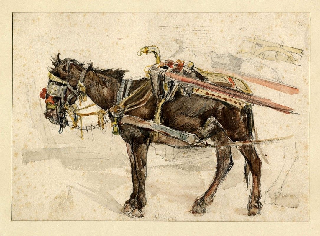 Acquerello, carboncino e matita su carta. mm 223x293. Firmato in basso al centro.
