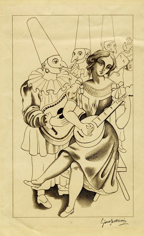 Acquaforte su bifolio vergellato. mm 180x110. Foglio: mm 220x280 (aperto). Firmata a penna e inchiostro di china in basso a destra. Testo a stampa al verso: "A happy new year 1923 from Osbert and Sacheverell Sitwell from Naples" con graziosi decori floreali. Provenienza: Collezione Tammaro De Marinis.