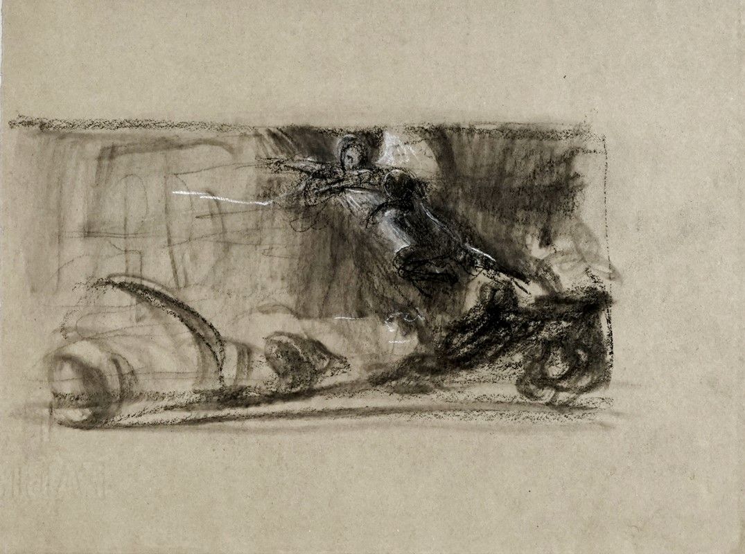 Carboncino, matita e acquerello su carta greve con filigrana. mm 220x290. Ulteriore studio di figure realizzato al verso del supporto.