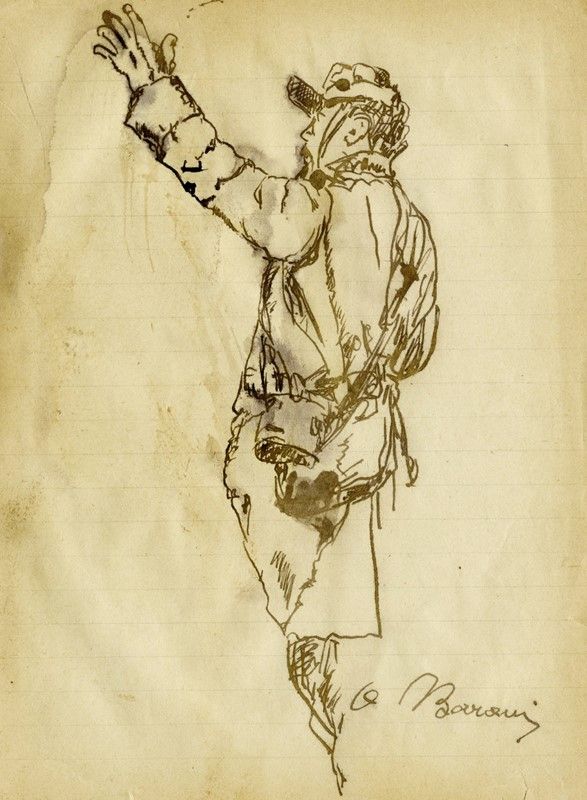 Penna e inchiostro di china bruno e nero su carta. mm 205x150. Firma in basso a destra.
