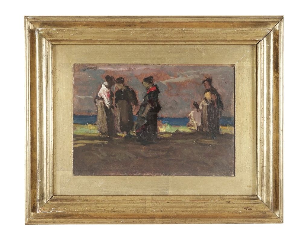 Olio su cartone. cm 15x22. Firmato a matita in alto a sinistra, controfirmato a penna e inchiostro di china sul verso.