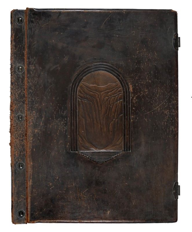 Volume (Inferno) in-folio atlantico (818x598 mm). Carte [76] + 34 tavole a colori realizzate da Amos Nattini. Testo in oro stampato su due colonne, entro bella cornice tipografica. Ottimo esemplare in barbe, con veline protettive a gran parte delle carte di testo e ciascuna tavola preceduta da carta bianca. Legatura originale in vitello marrone con, al centro del piatto, un bassorilievo disegnato da Nattini. Fermagli, bulloni in metallo al dorso e sguardie in seta decorata, anch'esse con motivi attinenti alla cantica.