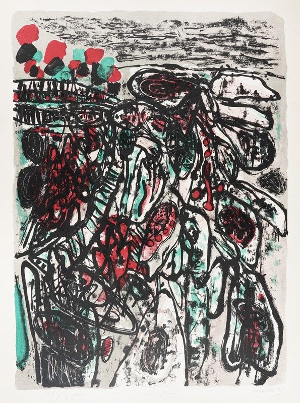 Litografia. mm 690x495. Foglio: mm 760x560. Firma e data a matita in basso a destra, titolo in basso al centro e tiratura in basso a sinistra. Es. 23/75.