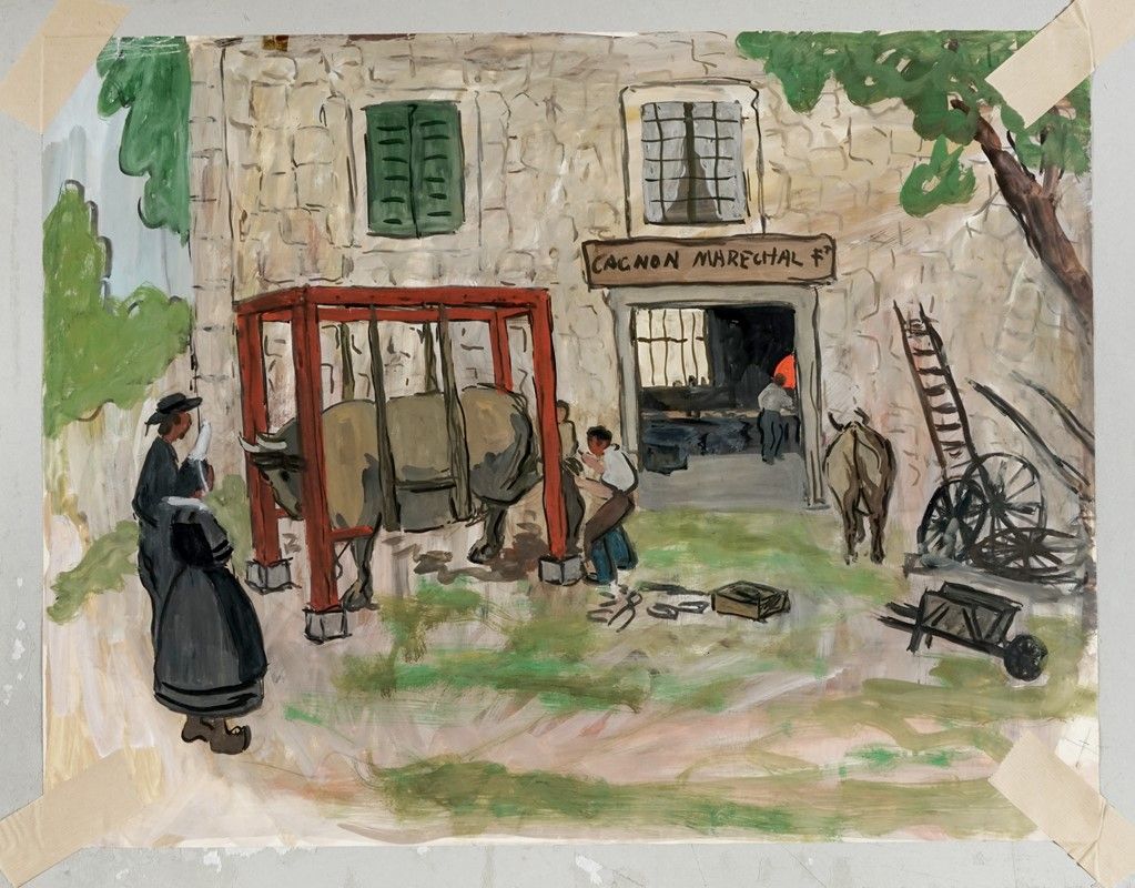 1) Locanda/Scena paesana. Matita e tempera recto/verso su carta. mm 500x650. Firmata al recto in basso a sinistra. 2) Circo. Matita e tempera recto/verso. Firmata al recto in basso a sinistra. Provenienza: Collezione Tammaro De Marinis.