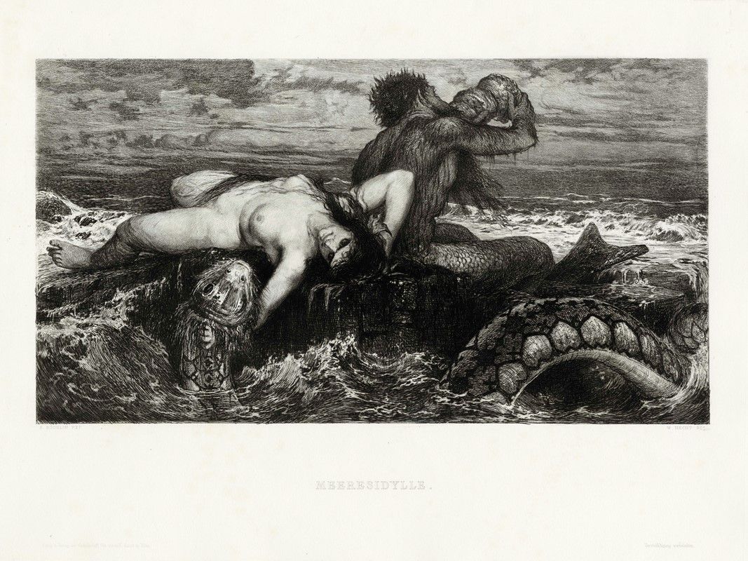 1) Meeresidylle. Acquaforte. mm 165x300. Foglio: mm 260x360. Titolata in lastra in basso al centro. Dati editoriali lungo il margine inferiore. 2) Der Anachoret. Acquaforte. mm 280x170. Foglio: mm 360x260. Titolata in lastra in basso al centro. Dati editoriali lungo il margine inferiore. Entrambi i fogli sono incisioni postume dagli omonimi lavori dell'Artista.