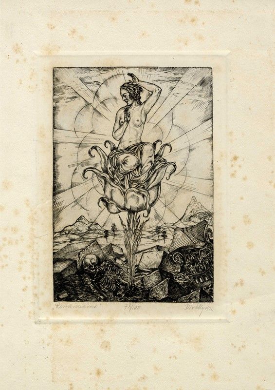 1) Diveky J. Renaissance. 1920. Acquaforte. mm 190x130. Foglio: mm 350x240. Firmata e datata a matita in basso a destra, titolata a matita in basso a sinistra. Numerata a matita in basso al centro. Timbro a secco posto all'angolo inferiore destro. Es. 78/100. 2) Reifferscheid H. An Shelly. Acquaforte. mm 120x180. Foglio: mm 180x225. Firmato a matita in basso a destra. Titolato in lastra in basso al centro. "Probedruck" a matita in basso a sinistra. 3) Beier O. H. Senza titolo. Acquaforte su velina. mm 140x180. Foglio: mm 200x260. Firmata in lastra in alto a destra, controfirmata a matita in basso a destra.
