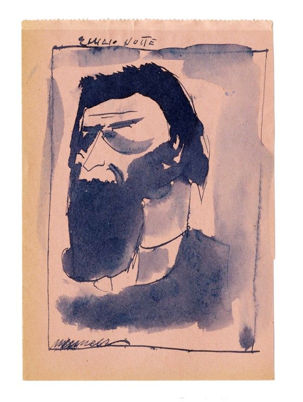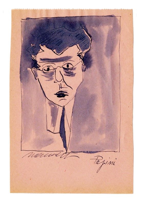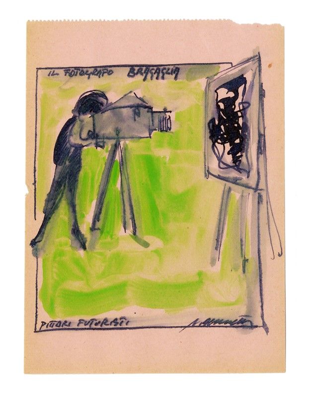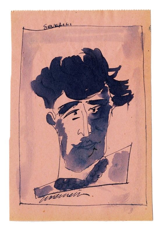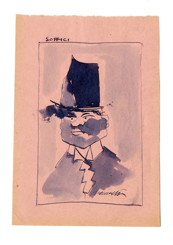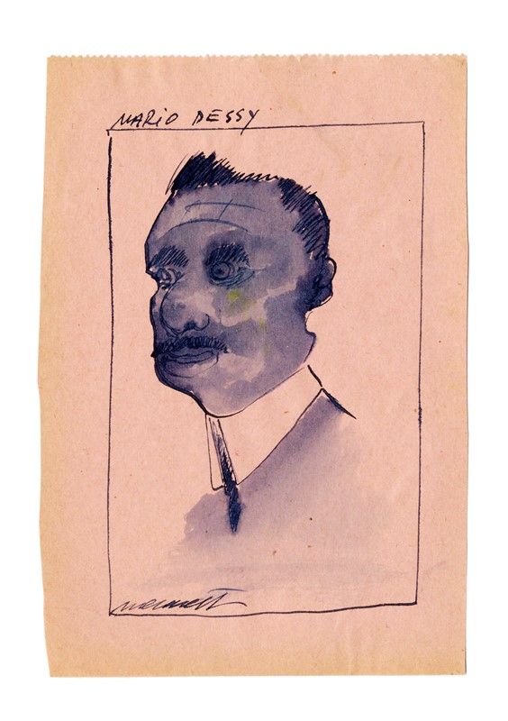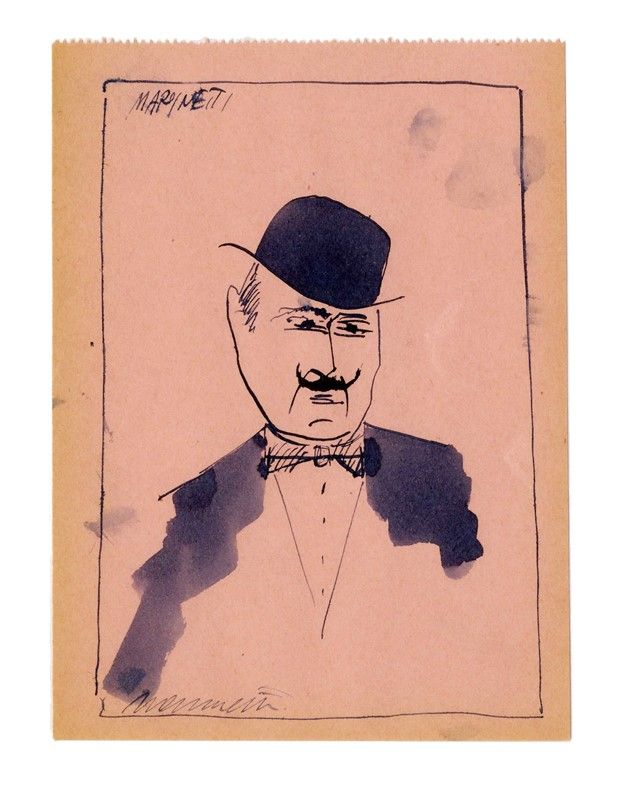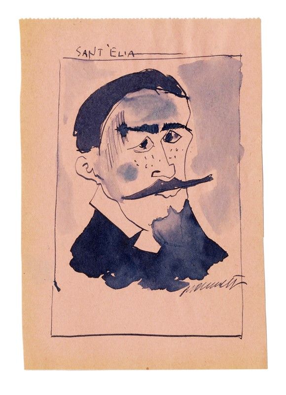 Acquerello e penna e inchiostro di china su fogli sciolti rosa ma di un unico taccuino. mm 155x105 cad. La maggior parte firmati, tutti titolati con il nome dell'artista ritratto. Meraviglioso nucleo di 31 personalità di spicco dell'ambiente futurista o vicino ad esso, comprendente: Cristofanetti, Marinetti, Tommei, Favalli, Paladini, due ritratti di Dottori, Dessy, due ritratti di Sironi, Azari, Oietti, Jannelli, Notte, Escodamè, Farfa, Chiti, Giardini, Papini, Sant'Elia, Somenzi, Severini, Battistoni, Bragaglia, Giannattasio, Tulli, Vasari, Soffici, Carrà, Casavola e Tommei. Provenienza: Collezione fiorentina futurista; Eredi Nannetti.